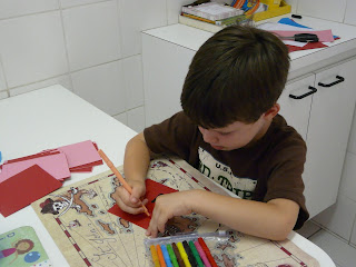 Finally, a photo of Noah at school yesterday when they celebrated Carnaval with costumes and a little school parade. Noah decided to reuse his Halloween costume.